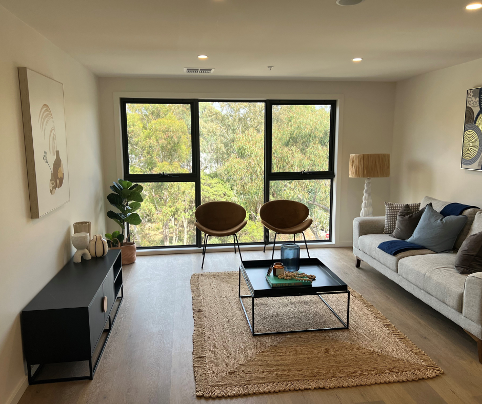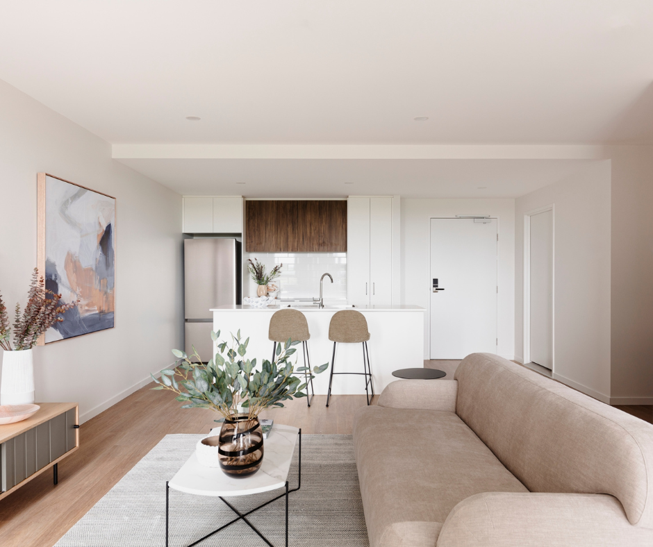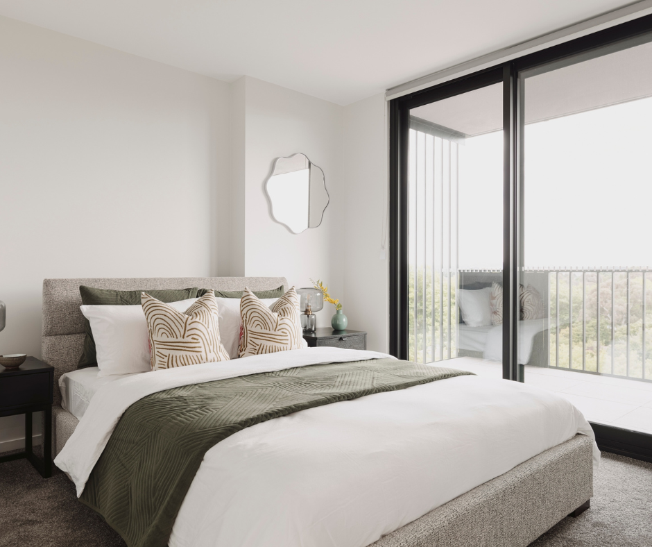 The mix of stylish studio, 1, 2 and 3 bedroom apartments feature open plan living, quality inclusions, modern appliances, large balconies, and abundant natural light. The complex also offers superb amenities for residents including communal areas, a large grassed outdoor terrace and a gym and yoga studio.