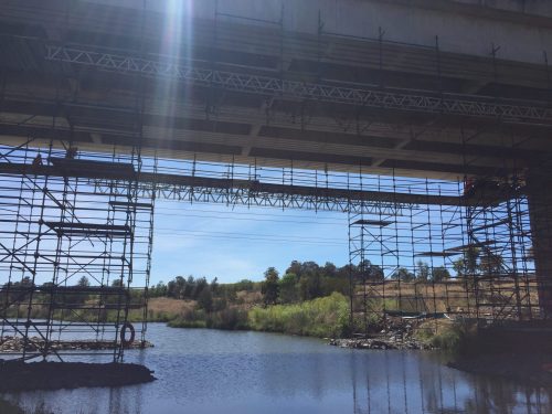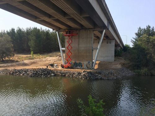The project involved the strengthening of bridge B4004 on the Tuggeranong Parkway, as part of a larger bridge renewal program across the ACT. The work included the construction of four new concrete piers, the tallest reaching just over 9.5m high that was poured in four stages. It was a high-risk project because a significant amount of the works needed to be completed at heights, with the team needing access to the 12m high underside of the bridge. To combat the difficulties accessing the underside of the bridge, the team created and certified custom compact lifting brackets that could be temporarily affixed to the underside of the bridge and a builders wrench attached, to help raise formwork as needed.