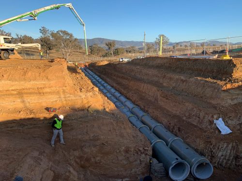 The project involved the updating of the 900m Coppins Crossing Road to the new roadway known as John Gorton Drive, as well as updating the intersection of William Hovell Drive. The project involved approximately 120,000m3 of earthworks, over 200m of trench installed, seven major road crossings and over 900m of pipe being laid. The project team were able to stockpile 90,000m3 of material from the earthworks for the client to use on future projects. Careful planning was used to minimise traffic disruption to the busy roadways, which included laying asphalt overnight to reduce disruption to commuters and create the best quality finish for the client.
