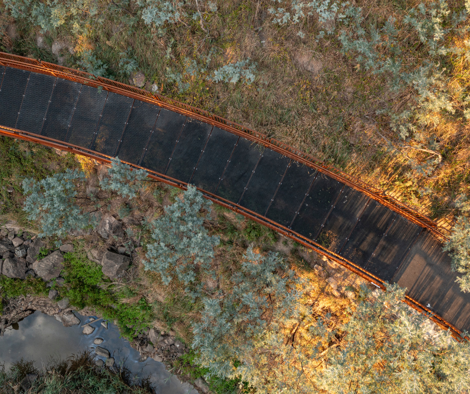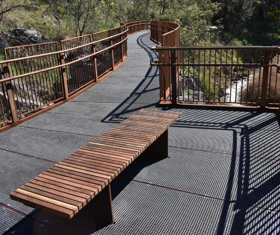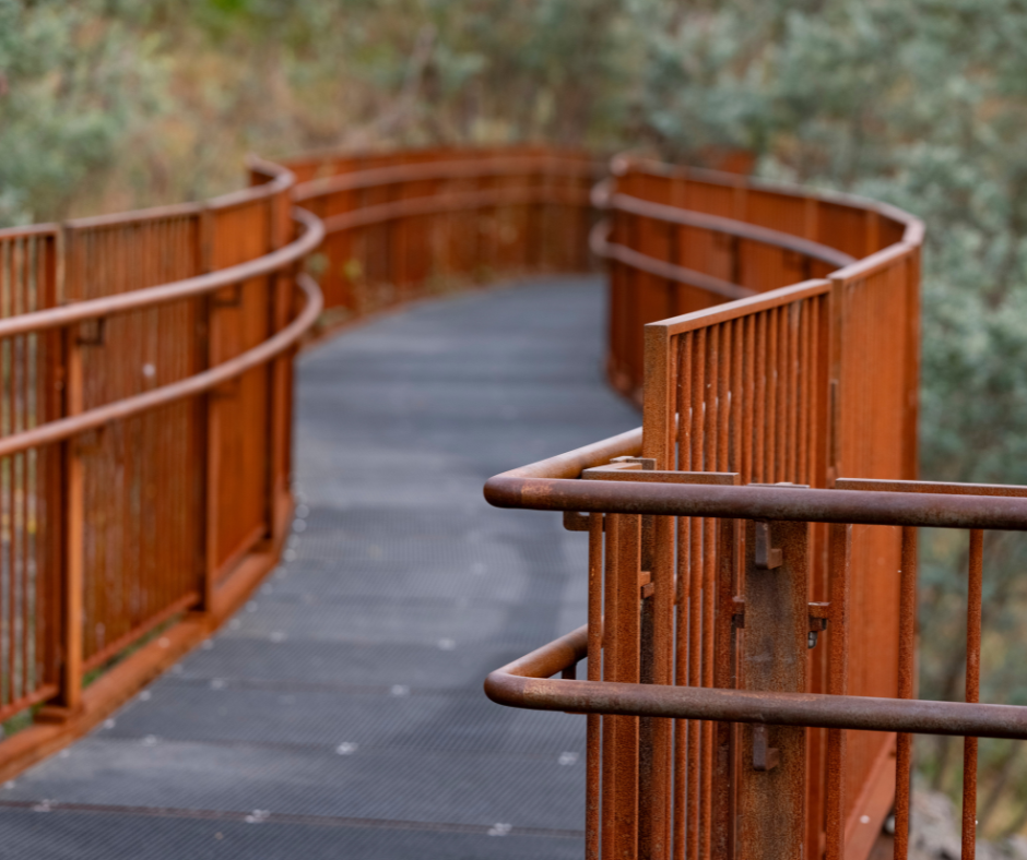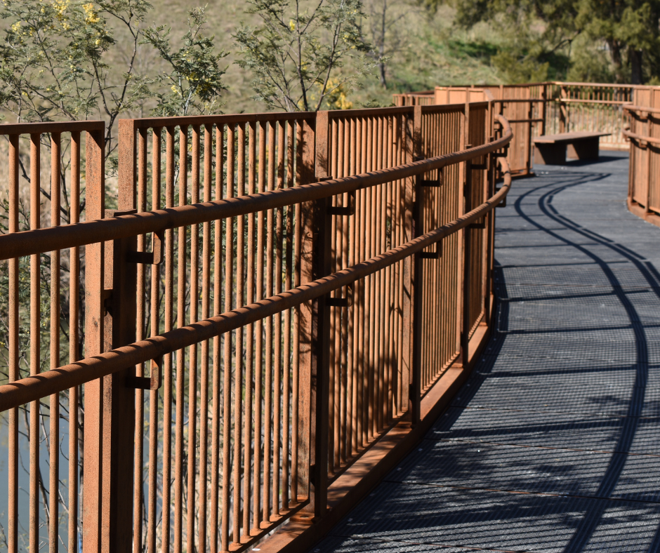 The team at Complex Co. worked to replace the deteriorating timber footbridges with steel bridges with minimal disruption to the environment. The bridges were widened to 2.5m to accommodate cyclists and wheelchair users, without impacting sensitive environmental areas. To blend with the natural setting, Complex Co. chose a rusted steel finish for the new bridges, complementing the native grassland’s colours and improving the aesthetics.