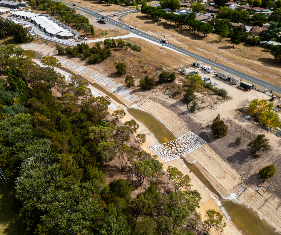 Cord Civil expertly managed this project to re-naturalise and restore stormwater drains in Calwell, leading to better water quality, improved amenity and ecological benefits.