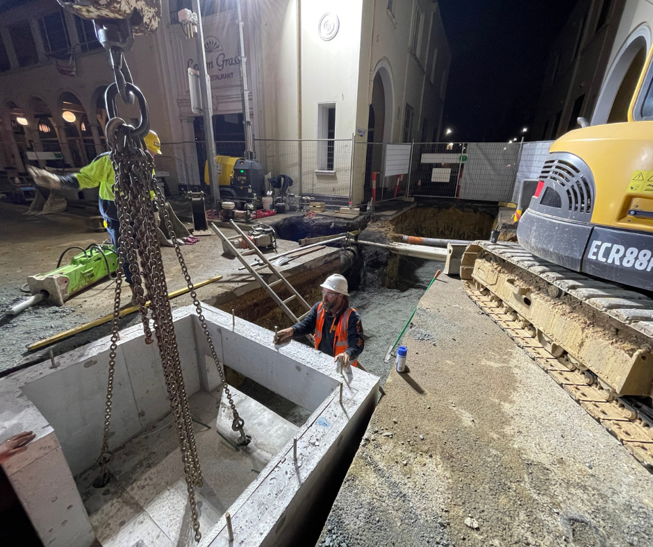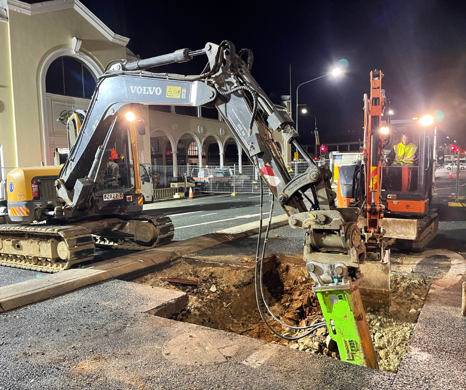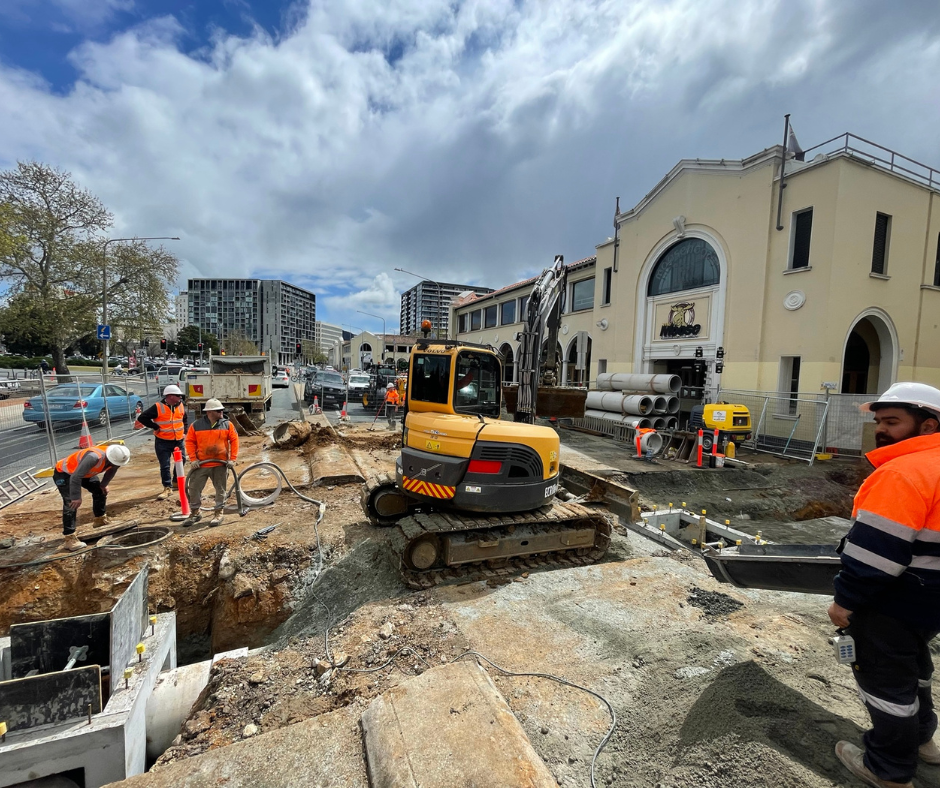 Following preliminary works, Complex Co undertook works to lower the 225-millimeter-high pressure watermain and the construction of precast concrete chambers on the downstream side of the network. At the same time, the design for the upstream network was being developed. Showing excellent commitment to environmental best practice, Complex Co employed innovative strategies to work around the oversized root systems of the 100-plus year-old trees.
