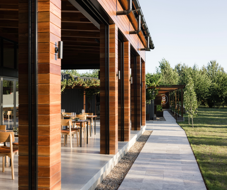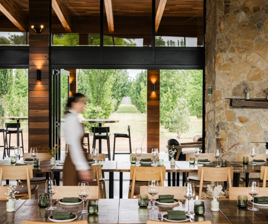 Kora, along with Architects Ring & Associates, have delivered a stunning space with the Pialligo Function Centre, a space that embraces the natural beauty of the Truffle Farm setting. Incorporating natural timbers, locally sourced Pialligo stone and an abundance of natural light, the final product is an outstanding space that blends beautifully with the natural environment, providing a dining and function room with stunning views of the surrounding landscape.