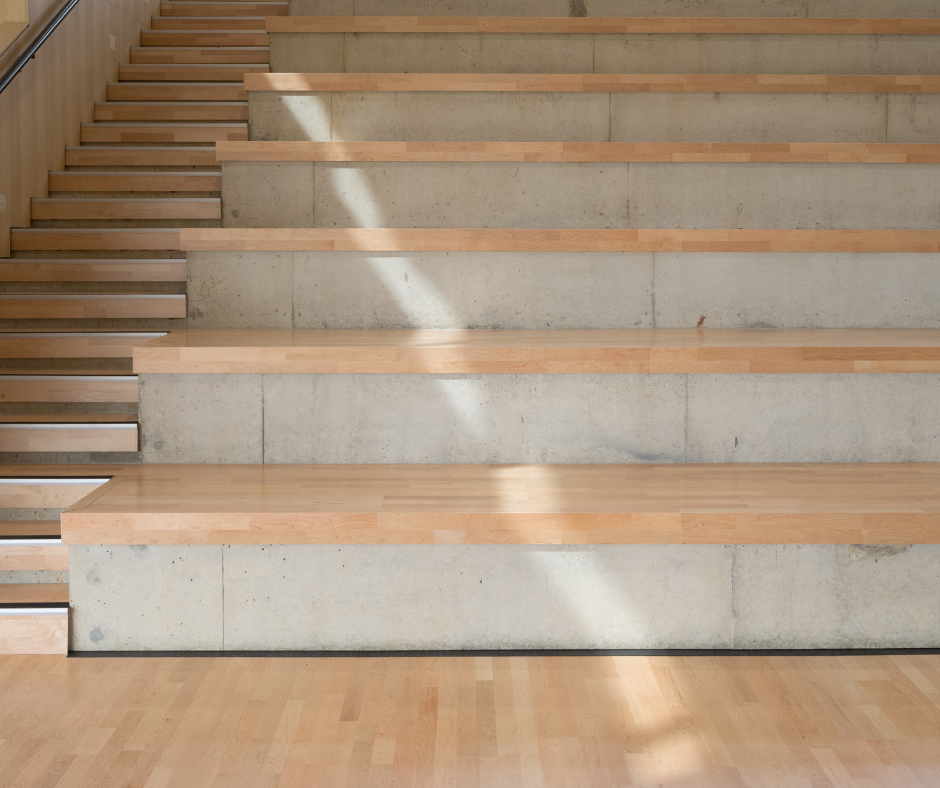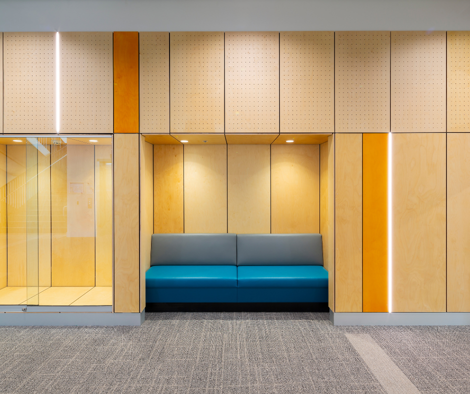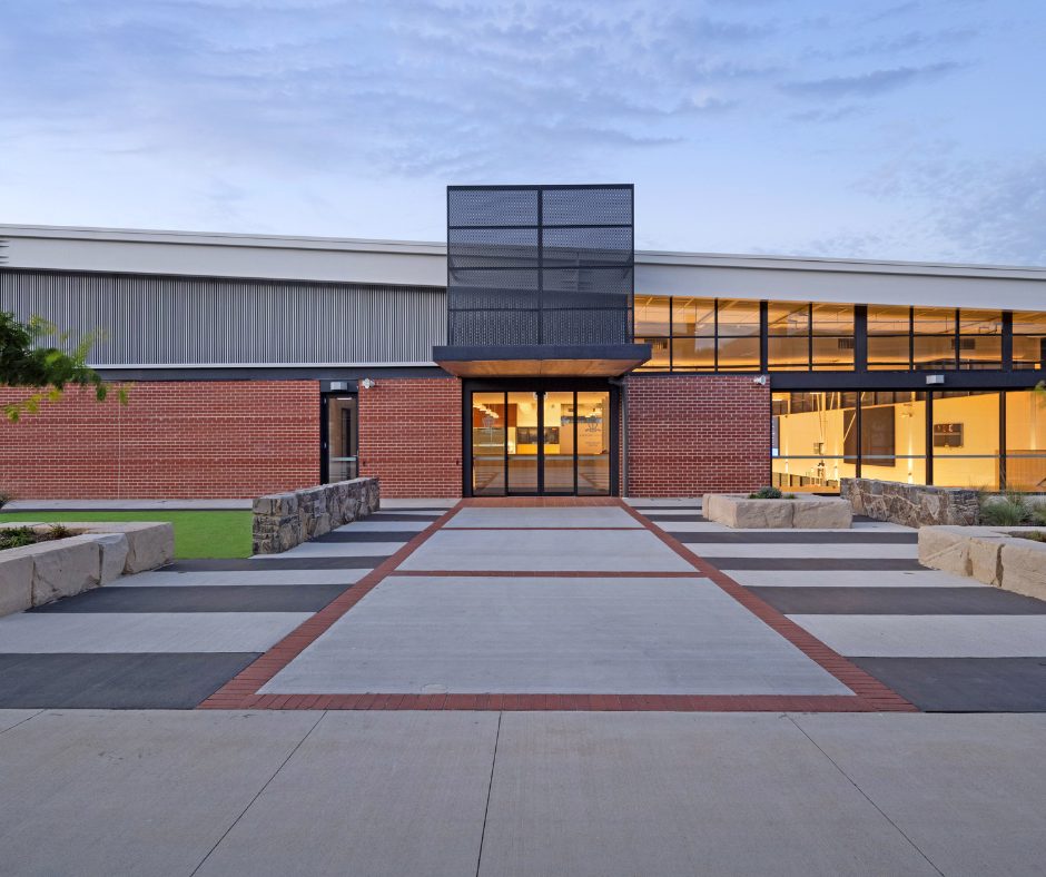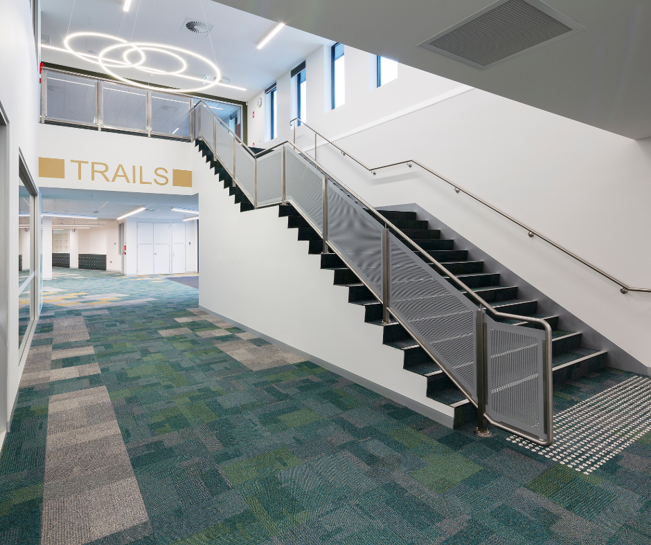Thoughtful landscaping and outdoor amenities are the finishing touches on this project, with native plantings and inviting communal spaces creating a harmonious connection between the school and its natural surroundings.