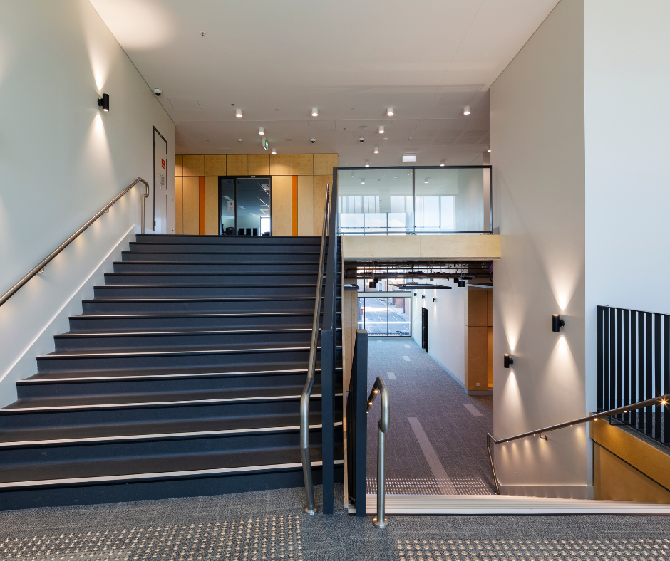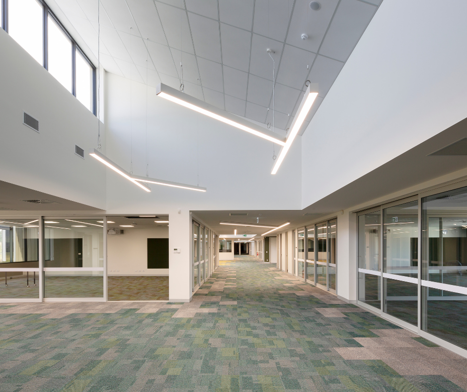 Construction Control have delivered an excellent addition to Marist College Canberra with the unique multi-purpose Veritas Building. Comprising three storeys and spanning 4,600 square metres, the building is designed to optimise natural light and minimise solar heat gain. The façade blends performance with modern architecture, while inside versatile spaces abound to accommodate diverse academic disciplines, from science to performing arts.