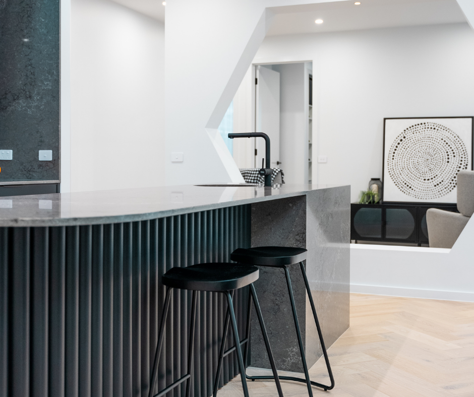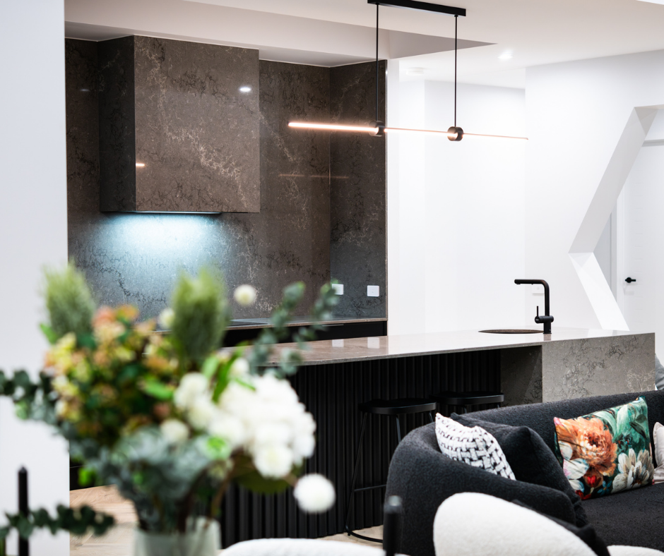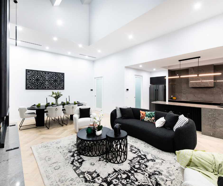‘The Arte’ is a stunning display home by Prof Homes, in collaboration with The Department of Design and Architects Ring and Associates. With its striking front façade and double height formal lounge, the home’s structural engineering, façade materials, and large feature glazing showcase Prof Homes’ ability to deliver architectural concepts to an elevated level. The rear of the home features a pop-up ceiling to the living room along with highlight windows, and a bespoke kitchen and joinery designed by The Dept of Design. The result is a level of luxury rarely seen in display homes.