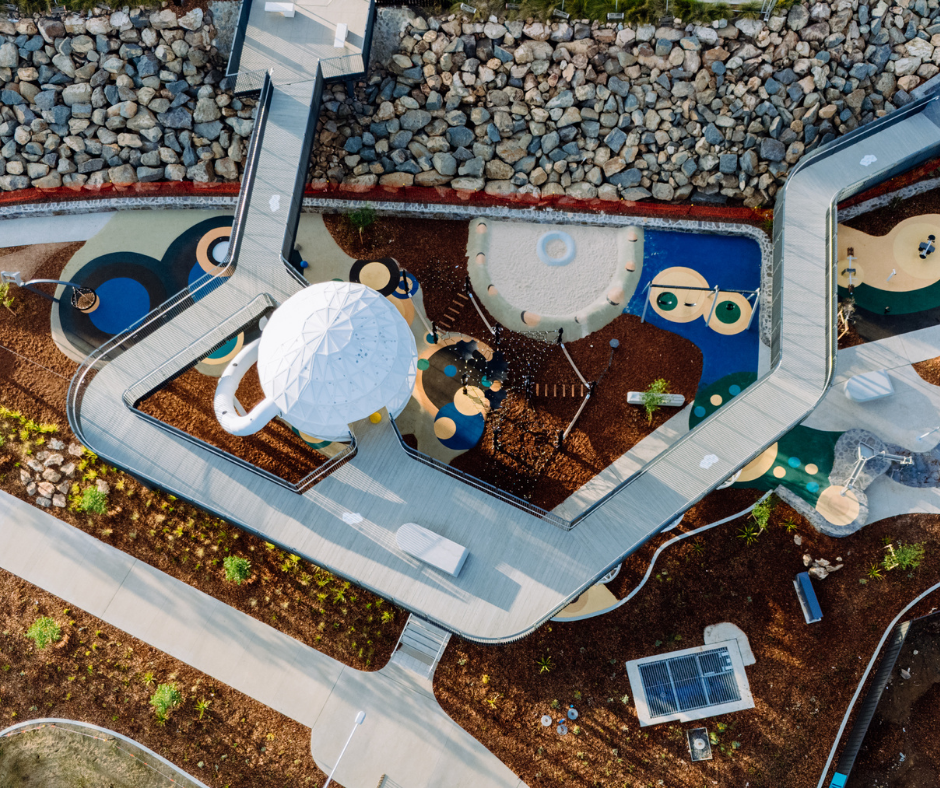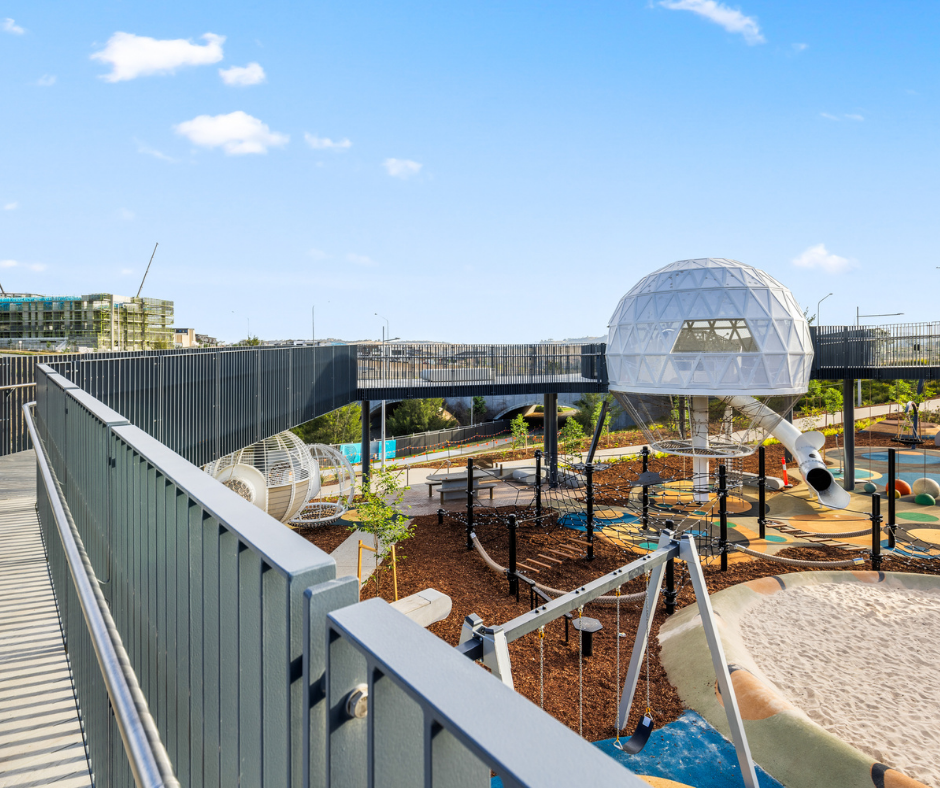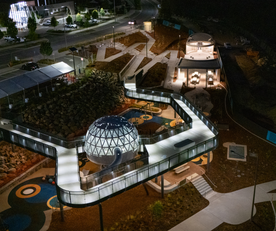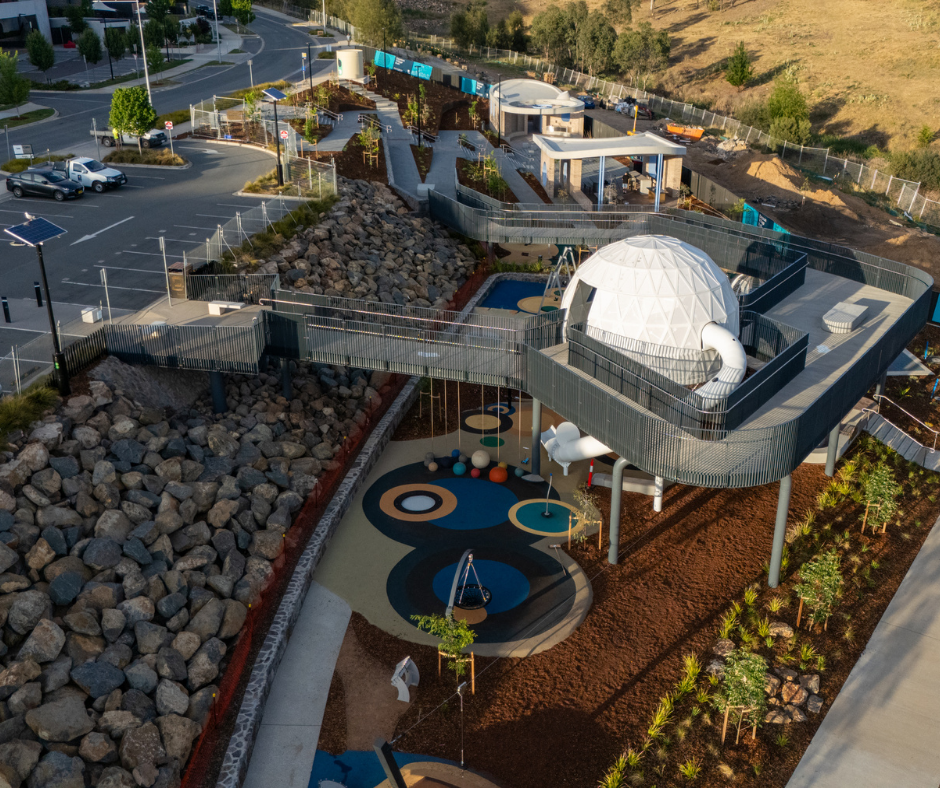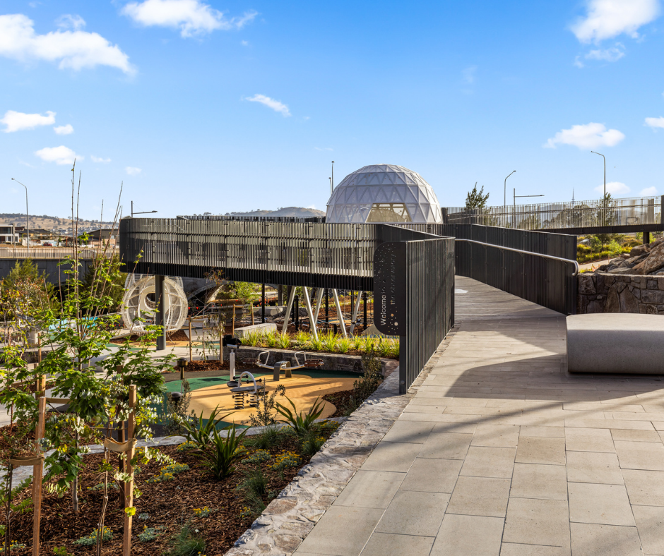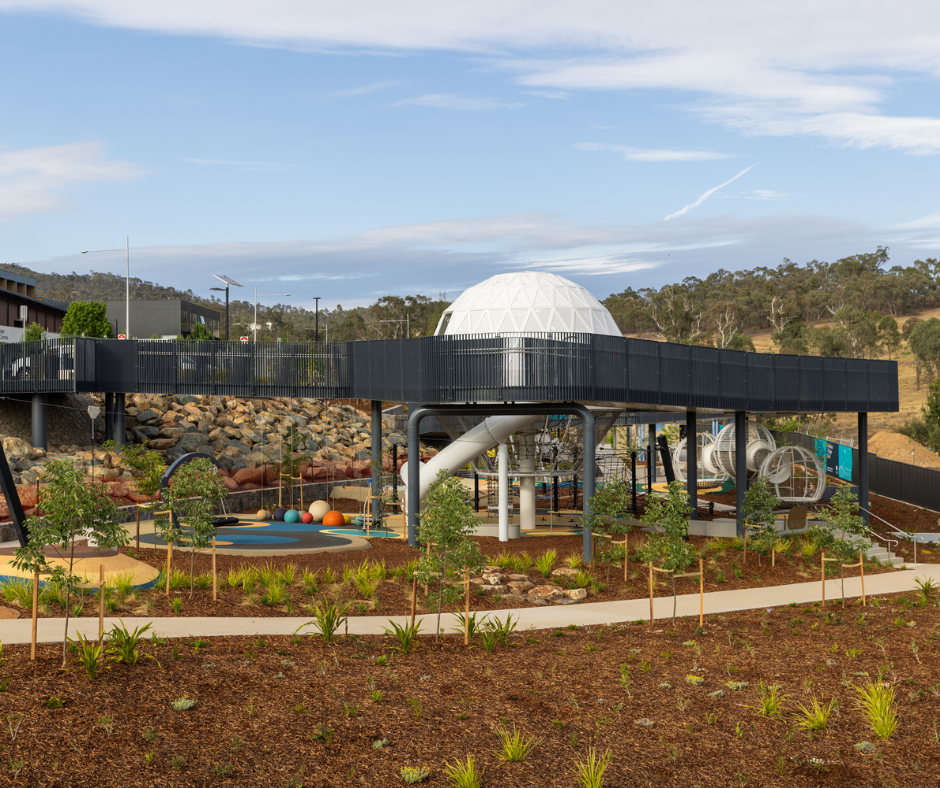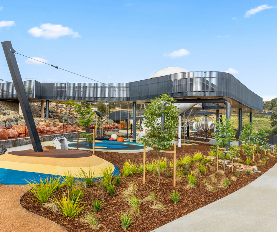 The Denman Prospect Village Playground, engineered and built by RAM Constructions, is a vibrant recreational hub in Canberra’s newest suburb. Drawing inspiration from Mount Stromlo Observatory, it features astronomy-themed elements such as an eight-metre-high observatory tower with an illuminated dome, a crater-inspired sandpit, and planetary trails. Interactive waterplay mimics the Milky Way. The design overcomes accessibility challenges with a seamless switchback pathway, elevated boardwalk and clear wayfinding signage. RAM’s innovation and attention to detail ensured this project exceeded expectations, delivering a cohesive, functional, and visually striking landscape that serves as a centrepiece for the community.