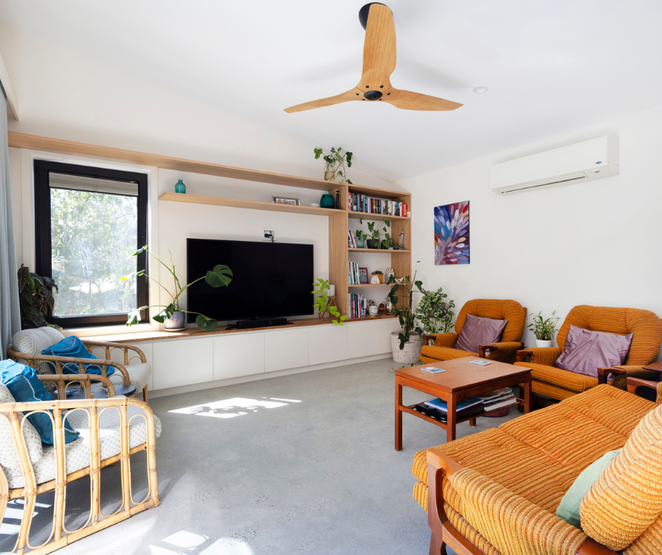 This renovation from Edward Robert Builders and Neighbourhood Architecture showcases sustainable residential design, and combines heritage preservation with modern energy-efficient solutions. The original Tocumwal house was revitalised, incorporating a modern rear addition and a study nook. The project prioritised environmental responsibility through solar passive design, high-performance insulation, thermal efficiency and use of sustainable and repurposed materials. Double-glazed uPVC windows, superior wall insulation, and natural cross-ventilation optimise comfort, while rigorous waste management ensured materials were repurposed or recycled.