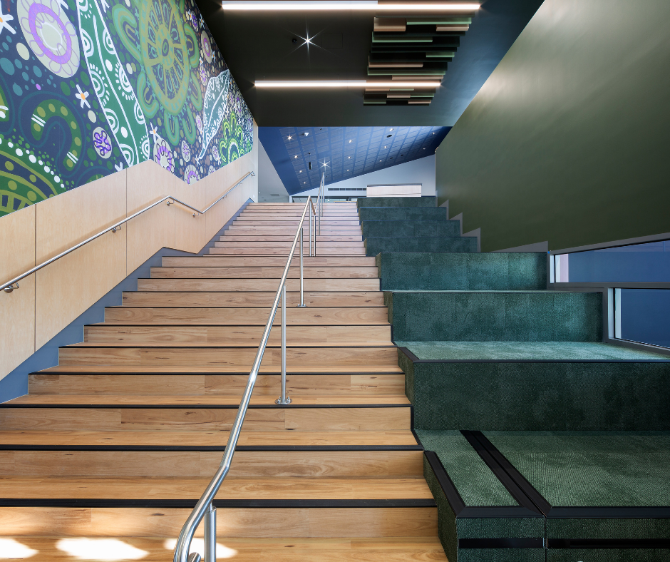 The Aunty Agnes Shea High School in Taylor is a $94 million project designed to accommodate 800 students. Spanning 13,000 square metres, the school includes a double gymnasium, landscaping, outdoor recreation areas, and a performing arts centre, along with specialised learning spaces. Safety was a top priority for Hindmarsh through the design and construction, with specialised areas meeting stringent standards for ventilation, fire safety, and operational safety. The Hindmarsh team managed various site and project challenges through advanced drainage systems, retaining walls, safety barriers, and an innovative scaffold wrap.